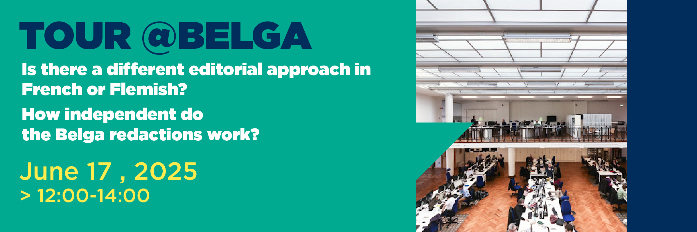 Schrijf je in voor een informatieve sessie, met blik achter de schermen bij de redactie van Belga en met bijzondere aandacht voor de tweetalige dynamiek van de redactie. Hoe beslist Belga welke taal de voorkeur krijgt? Hoe worden vertalingen aangepakt, en wat gebeurt er wanneer dezelfde nieuwsfeiten anders geïnterpreteerd worden in beide talen? Werken de Franstalige en Nederlandstalige redacties autonoom of nauw tezamen?